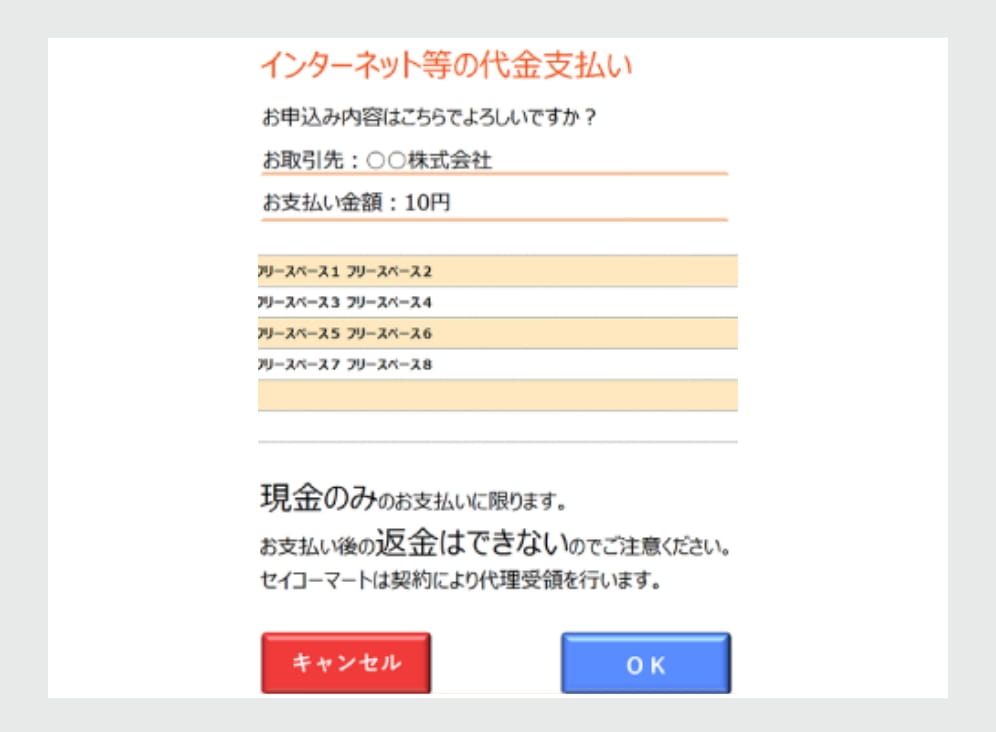 レジの画面でお支払内容を確認し、「OK」ボタンを押してください。