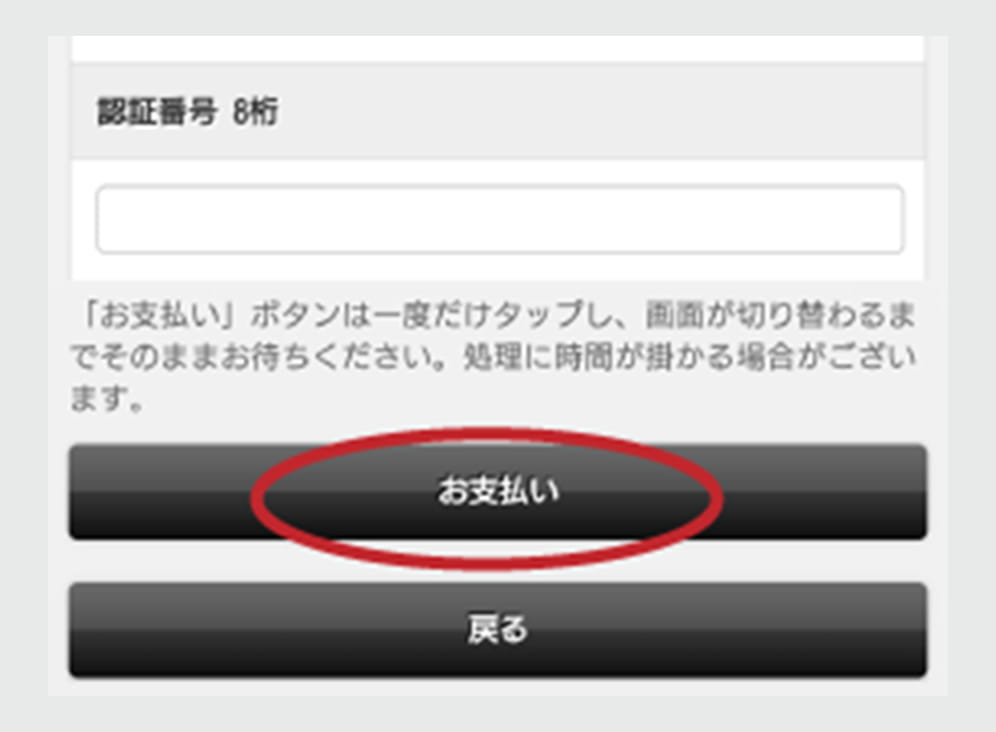 支払方法説明画面にてカード情報を入力し、「お支払い」を選択