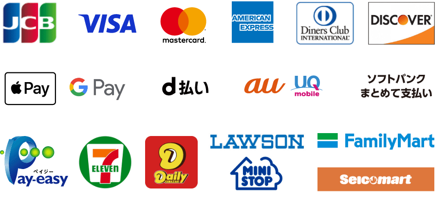 クレジットカード決済やアプリ決済、銀行振込、口座振替、コンビニ決済など、お客様の様々なニーズに合わせた決済サービスがご利用いただけます。